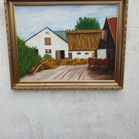 Oliemaleri, B. Dybdahl Dantoft, motiv: Landskab, stil: Naturalistisk, b: 69 h: 80, Oliemaleri af Dybdahl Dantoft, med en meget typisk 70' er ramme