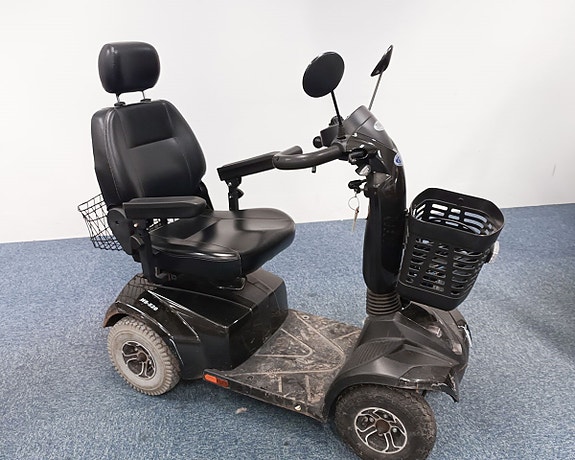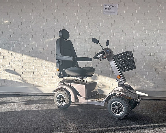 Brugt 4-hjulet el-scooter med komfortsæde. Sædet er udstyret med justerbare armlæn og nakkestøtte til mere behagelig kørsel. Scooteren er nem at køre og meget manøvredygtig og besidder en stor motor, så køreoplevelsen er helt i top.