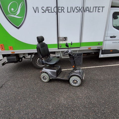 Brugt 4-hjulet scooter til en skarp pris. De 4 hjul giver en god stabilitet når du kører og sædet er udstyret med justerbare armlæn og nakkestøtte, så køreglæden er helt i top.