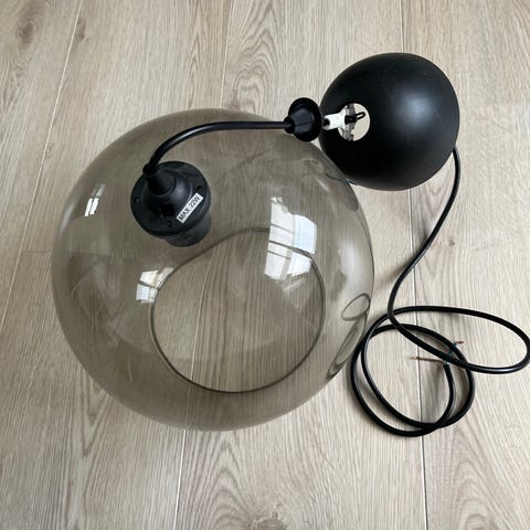 Flot røgfarvet lampe i glas