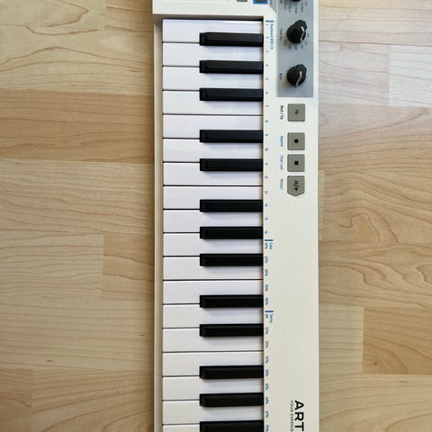 Arturia BeatStep MIDI-controller i hvid. En enhed med knapper og pads til musikproduktion og kontrol af MIDI-enheder.
