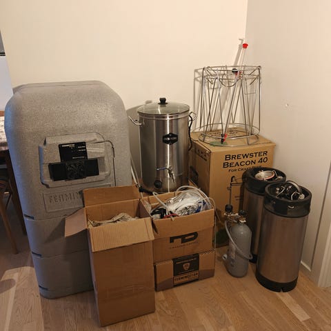 Ølbrygning og fadølsudstyr. Sættet indeholder forskellige dele til øludstyr, herunder fuld CO2-flaske 10kg, corneliusfade, regulatorer, slanger, koblinger og gasbrænder.e Udstyret er velegnet til brug i forbindelse med hjemmebrygning og -tapping, jeg får det desværre ikke brugt