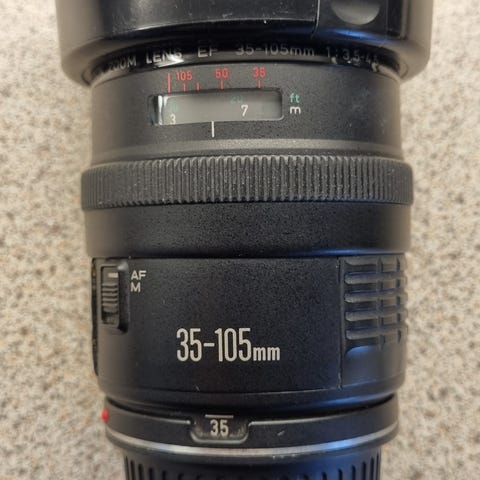 Canon EF 35-105mm 1:3,5-4,5 kameraobjektiv. Objektivet har en brændvidde på 35-105mm, velegnet til forskellige typer fotografering.