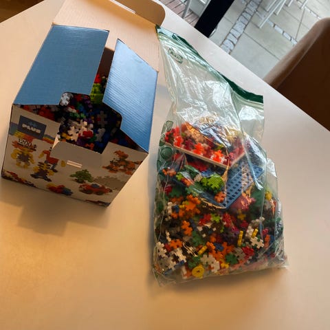 Plus Plus byggeklodser i forskellige farver, velegnet til børn. Indeholder mange små klodser i flere farver. Kan bruges til kreativ leg og konstruktion. Jeg købte dem til børnebørn, men de er ikke blevet brugt, så derfor som nye. Fra ikke ryger hjem.