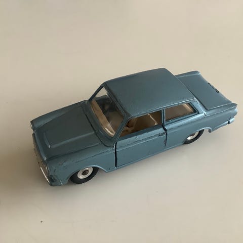 Dinky Toys Bentley S2 No. 194, modelbil i metal, grå farve, med åbent tag og detaljeret indvendig kabine i rød. Fremstillet i England af Meccano Ltd. Velegnet til samling eller udstilling.