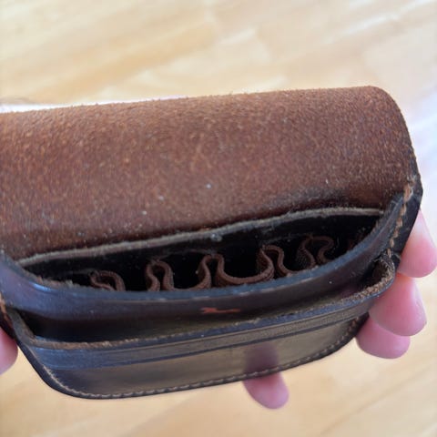 Sort læder taske med flere rum og lynlåslukning. Tasken har en praktisk størrelse til opbevaring af småting og kan bæres omkring livet eller på skulderen.