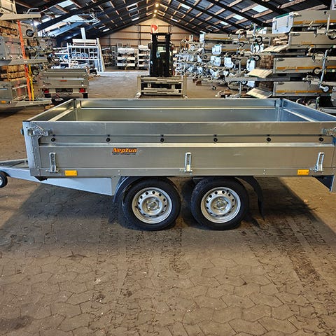 Den professionelle med ekstra stort ladmålNeptun Nordica GN124-N7-263 PlusEn trailer fra Neptun Nordica serien er kendetegnet ved:et ekstra stort ladmålaftagelige hjørnestolper og sider der kan lægges ned eller tages helt afstærke sider der beskytter ved læsning med gaffeltruckgode køreegenskaber og ideal til transport af langt godsnem lastsikring. GN124 Plus har:en totalvægt på 750 kg40 cm sider i dobbeltpladechassis der er boltet sammenKnottaksler og træk13-pol stik Praktisk trailer med ekstra stort ladmålVores GN124 Plus er en praktisk trailer, der med en længde på 263 cm og en bredde på 145 cm har et ekstra stort ladmål. Længden og muligheden for at lægge forsmækken ned, gør GN124 Plus til den ideelle trailer til transport af langt gods.Trailerne fra Neptun Nordica serien er i modsætning til andre trailere fra Neptun højtlæsningstrailere. Det betyder at hjulene er placeret under ladet, hvilket giver mulighed for fuld udnyttelse af det store lad.Alle sider kan lægges nedDenne trailer er perfekt til dig, der har behov for at kunne lægge alle sider ned.Med Neptun Nordica GN124 Plus får du en alsidig og fleksibel trailer med aftagelige hjørnestolper og sider der enten kan lægges ned eller tages helt af. Det giver dig muligheden for en hel flad trailer, hvis du skal transportere større ting. Dobbelte sider og kraftig stålkant på ladTraileren kommer med dobbelte sider, hvilket betyder at siderne er mere stabile og modstandsdygtige. Den kommer også med dobbelt lukketøj i hvert hjørne, der gør den særdeles velegnet til professionel brug.Traileren kommer med indfældede surringer i den kraftige stålkant. Ladet er således helt fladt til læsning med gaffeltruck samtidig med at surringer og lad er beskyttet.GN124 kommer med en kraftig stålkantprofil på yderkanten af ladet. Den kraftige stålkant sikrer at bundpladen er beskyttet, når der læsses med gaffeltruck.God og sikker køreegenskabMed en GN124 Plus er du sikret en god og sikker køreegenskab. Traileren har en forstærket V-trækstang, uafhængigt hjulophæng og gummifjerderaksel.Husk nummerpladePrisen er ekskl. nummerplade og nummerpladegebyr til kun 790 kr (samme pris som hos SKAT).