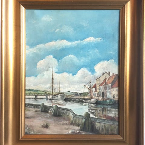 Havmotiv 34× 47 malet m akryl og lakeret m skibslak