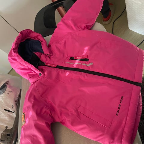 Varm vinterjakke str. 7-8 år. Med plysfoer