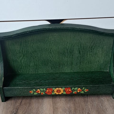 Flot gammel væghylde perfekt til køkkenet eller udstilling i stuen. Det er en gammel håndlavet sag, så den er en smule skæv, men det gør den bare endnu mere charmerende. Den sælges da jeg flytter og ikke har plads til den det nye sted.