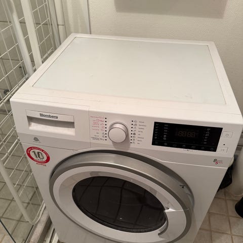 Blomberg vaskemaskine virker upåklageligt, hænger dog lidt i lågen så den skal lige løftes lidt når den lukkes.