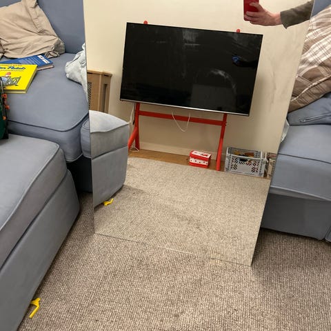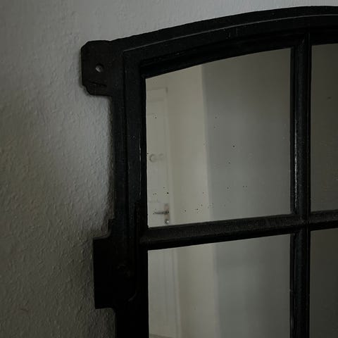 Jeg flytter til udlandet, så jeg giver mit runde spejl væk. Det har ingen ridser eller skader.