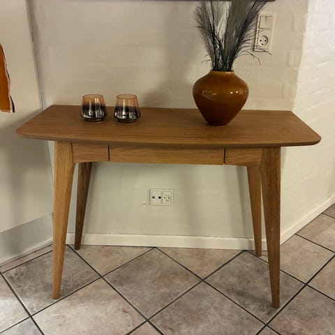 Meget flot skrivebord i olieret valnød finér med ben i massiv olieret valnød.