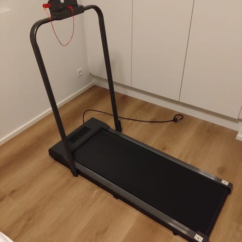 Fitness Core løbebånd i sort farve. Udstyret med betjeningspanel og tilslutningskabel. Velegnet til træning og motion i hjemmet.