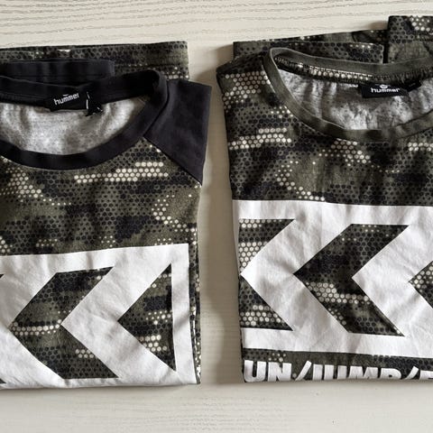 1 stk. mørkeblå bluse med korte ærmer og hvid Logo og Hummel på forstykket