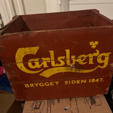 Retro trækasse på hjul fra de danske spritfabrikker.