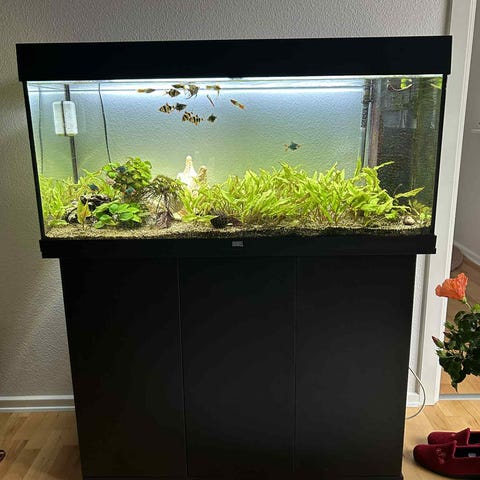 Jeg sælger mit Juwel Rio 350 liter akvarie, da beboerne klager over pladsforholdene.