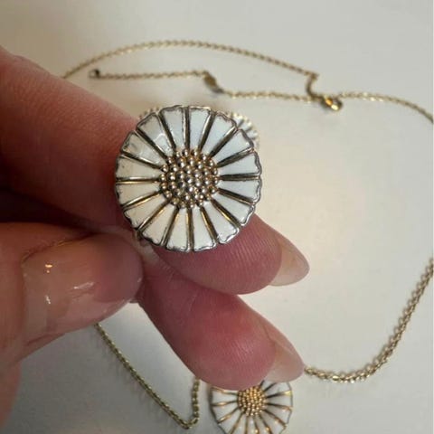 Marguerit ring, Sølv med sort emalje og 3x margueritter