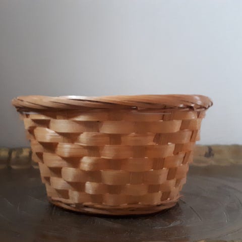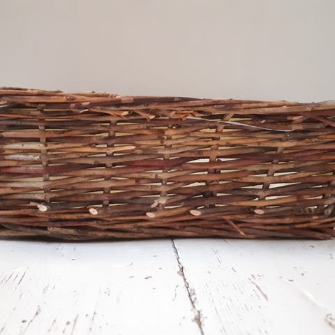 Meget sød og fin kurv i pileflet og med birkebark på siderne. Kan fx bruges til en sammenplantning, blomsterdekoration, potpourri eller toiletsager. Mål: b: 21 cm, l: 27 cm, h: 9,5 cm.