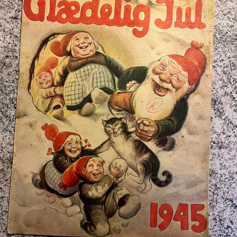 “Peters Jul” fra 1945, Herluf Jensenius, Forfatter Krohn, Johan, 75 år gl., Tydelige brugsspor, et enkelt løst blad, forsiden og den sidste blanke side mangler nok.