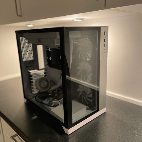 Fuld setup, ud over SSD og PSU (strømforsyning). Bundkortskruer medfølger ikke.