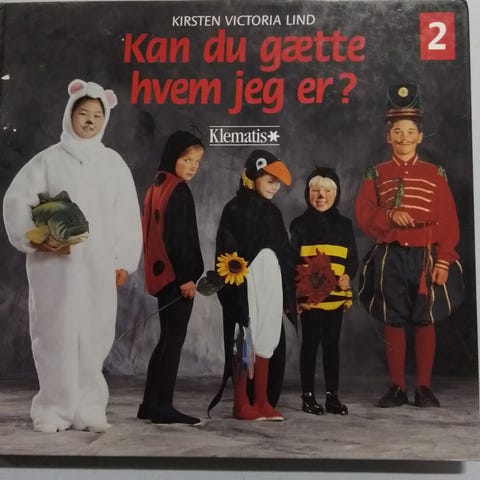 Kirsten Victoria Lind Kan du gætte hvem jeg er? bog med instruktioner og illustrationer til udklædning og kostumer. Indeholder vejledninger til forskellige kostumer med billeder og trin-for-trin instruktioner.