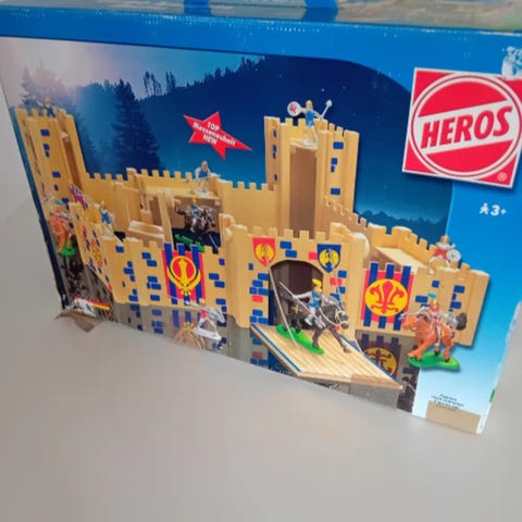 Med fungerende hængebro og 2 figurer og stige medfølger (ridder og drage).