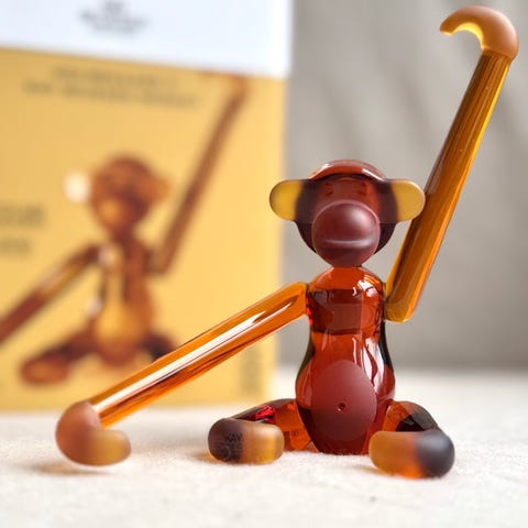 Holmegaard Kay Bojesen Monkey glasfigur i brunt glas. Er lavet i forbindelse med Holmegaards 200 år jubilæum.