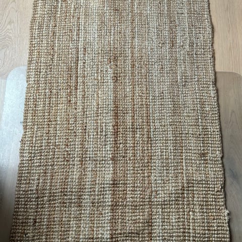 IKEA tæppe naturfarvet bomuld. Pletten i det ene hjørne er ikke forsøg fjernet.