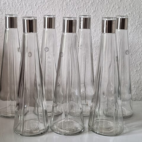 6 stk. små karafler til vin/vand/olie/eddike. Rummer ca. 0,5 liter. Har haft dem i en del år, men er kun brugt få gange.