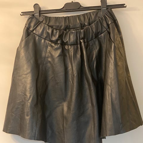 Moss Copenhagen læder nederdel i sort farve og størrelse S. Nederdelen er lavet af 100% ægte læder med polyesterforing. Den har elastik i taljen og sidelommer.