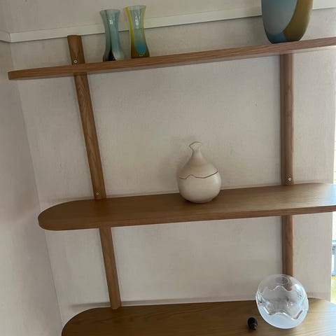 Fin reol i egetræ, trænger til en kærlig hånd i træet, men ellers rigtig fint.