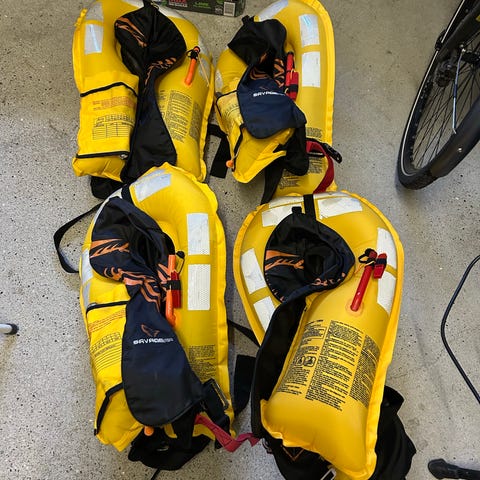 Rød fuldautomatisk oppustelige livvest med en opdrift på 165N, godkendt efter CE-standard. Passer til personer med en vægt over 40 kg og en omkrdds på op til 140 cm. Materialet og designet sikrer funktionalitet og sikkerhed i vandmiljøer.