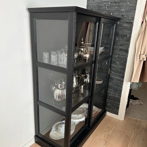 Flot sort vitrineskab sælges - uden væsentlige brugsspor - nypris 1800 DKK