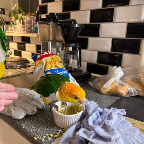 Venzuelsk Amazone papegøje sælges med stort bur han er meget tam så snart han kender en han hedder Chucky og har ring han flyver frit her hjemme hos mig og flyver selv over i buret når han skal på toilettet. Kommer når jeg kalder på ham. Rigtig sød og tam papegøje kan ses i Ålsgårde Nordsjælland hilsen Jack