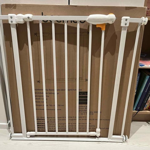 Hvid, 5 fag, l:359 cm h:74 cm samt et forlængerstykke på 60 cm. Brugt i ca. 1 uge og forlængerstykket er stadig i emballagen. Nypris 1150kr