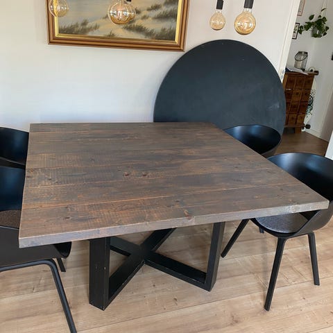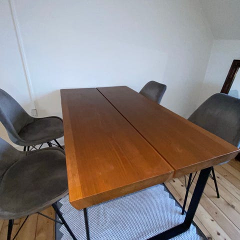 Ukendt mærke. Ligner et gammelt plankebord. Meget funktionelt og giver 6-8 gode siddepladser. Seriøse bud modtages. Og byttes gerne til rundt bord med tillægsplader.