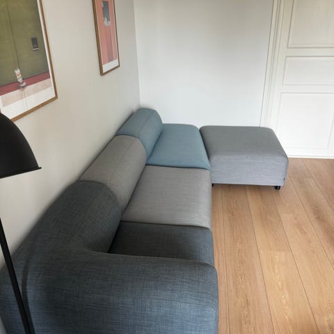 Puffen kan eks sættes i forlængelse af chaiselongen, så man får en dejlig lang chaiselong :)