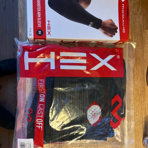 McDavid HEX 6440 beskyttelsesærmer i størrelse Large, sort farve. Ærmerne er designet til at give beskyttelse og støtte ved sport og fysisk aktivitet. Materialet indeholder HEX teknologi, som sikrer stødabsorbering og fleksibilitet. Passer til voksne og kan anvendes til forskellige sportsgrene.