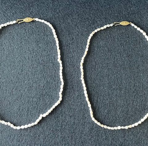 2 Flodperle og 1 koralstykker perlekæder alle Italienske måler 40 cm i længden ,Prisen er 25 kr pr. stk.