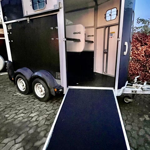 Fantastisk trailer med frontudgang og alubund. Løbende vedligeholdt. Fra 2012. Har dyretransportattest. Har kamera så man kan se hestene under kørsel.