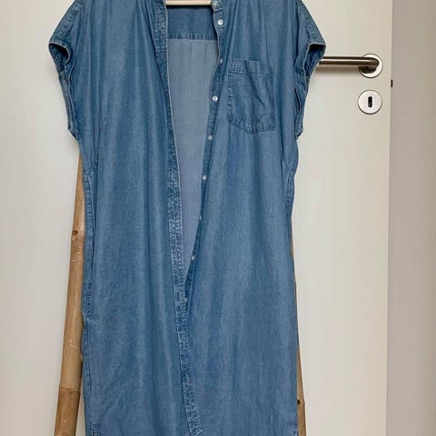 Smuk og meget anvendelig vest i denim fra Britt Sisseck. Brugt en enkelt gang. Fuldstændig som ny. Str 36.
