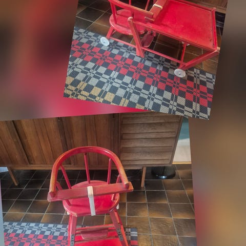 Højstol retro vippes til legestol. Classic danish baby high chair folds downn to play table. Practical hentes FRB. Have two. Price 175kr each.