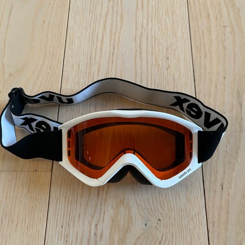 Uvex skibriller med orange linse, sølvfarvet ramme og sort justerbar rem. Brillerne har ventilationsåbninger for at reducere dugdannelse og sikre bedre udsyn under skiløb eller snowboarding.