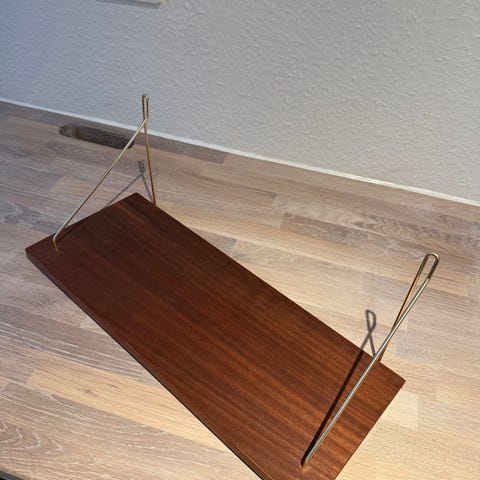 Ophængt skrivebord i teaktræ med hylder. Bord er blevet slebet ned og olieret