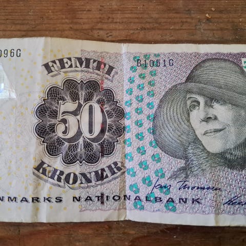 Gammel 50kr seddel med fiske motiv