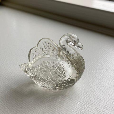 Saltkar i presset klar glas - gren med fugl og rede