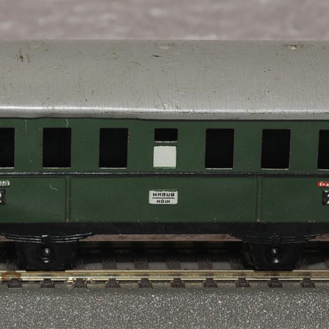 To modelskibe af passagerbåde fremstillet i resin Skibene har detaljerede overbygninger og rækværk, og de er udstyret med små figurer.