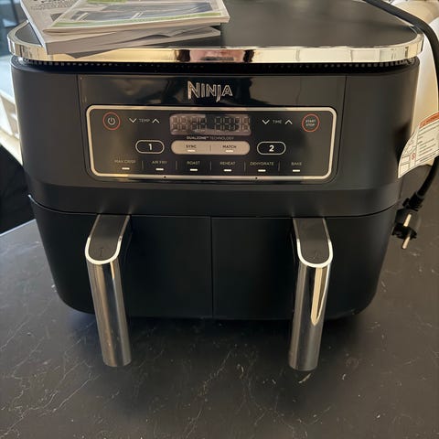 Ninja 500 er et perfekt valg hvis du f.eks vil stege en lakseside eller opdele airfryeren i 2 rum og stege/varme f.eks. kød i det ene rum og brød i det andet. Selvom stege- og varmetiden er forskellig kan airfryeren indstilles så begge rum er færdige på samme tidspunkt. Airfryeren fungerer 100% - men vi er blevet fristet til at prøve en ny variant. Fast pris kr. 500,-