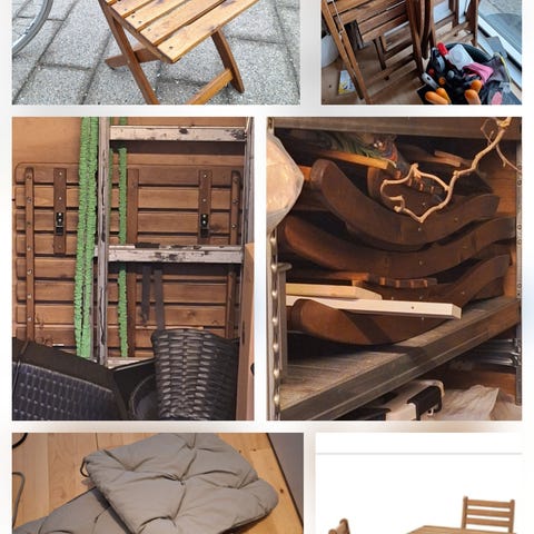 Regnvandstønde, plæneklipper, selvvandingskasser, multistige, plænelufter, 2 x plantekasser m/4 rum, 6 x havestole m/hynder, 2 x solsenge m/hynder, træhavebord m/3 stole og hynder.